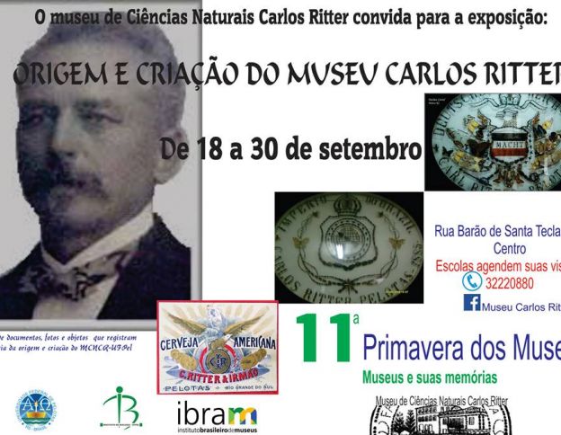 O Museu de Ciências Naturais Carlos Ritter está realizando, até o dia 30, Mostra sobre a origem e criação daquele museu. O evento integra a programação da 11ª Primavera dos Museus. Clique na imagem para saber mais.. O evento integra a programação da 11ª Primavera dos Museus.