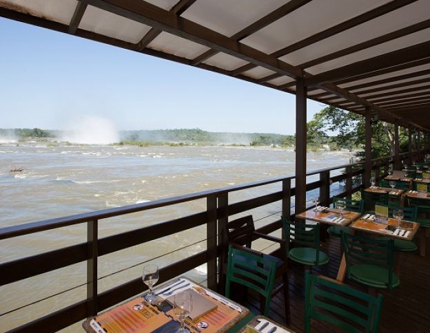Saborear um dourado assado com vista panorâmica para a formação da Garganta do Diabo, a mais famosa das quedas d’água das Cataratas do Iguaçu, é uma das opções de quem visita o Parque Nacional do Iguaçu. Foto: Divulgação/Rodrigo Vieira.
