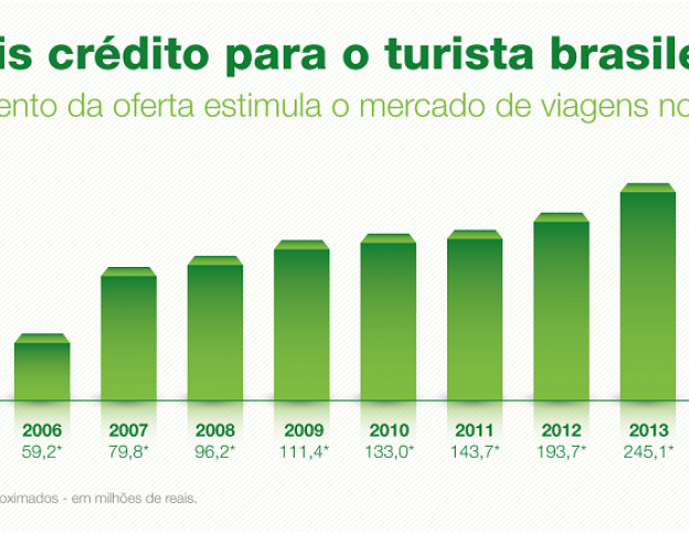 “O Ministério do Turismo tem o papel de incentivar essas linhas de crédito para que mais brasileiros viajem pelo país e mais empresários invistam no turismo”, diz o coordenador geral de investimentos do Ministério do Turismo, Marcio Vantil. Na mesma linha da Caixa, um crediário do Banco do Brasil parcela a compra de pacotes de viagem, passagens aéreas e hospedagem. No ano passado, foi concedido cerca de R$ 1,14 milhão em créditos a correntistas, um gasto médio alto, de cerca de R$ 3.400 por pessoa.